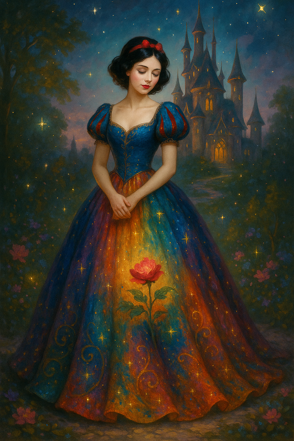 Από τότε, η Χιονάτη είχε ειρήνη στην καρδιά της. Δεν ήθελε να αλλάξει τίποτα πια. Ζούσε, αγαπούσε, θυμόταν. Και κάθε 1.000 χρόνια, το Ρόδο του Χρόνου ξαναάνθιζε — όχι για να διορθώσει… αλλά για να τιμήσει.