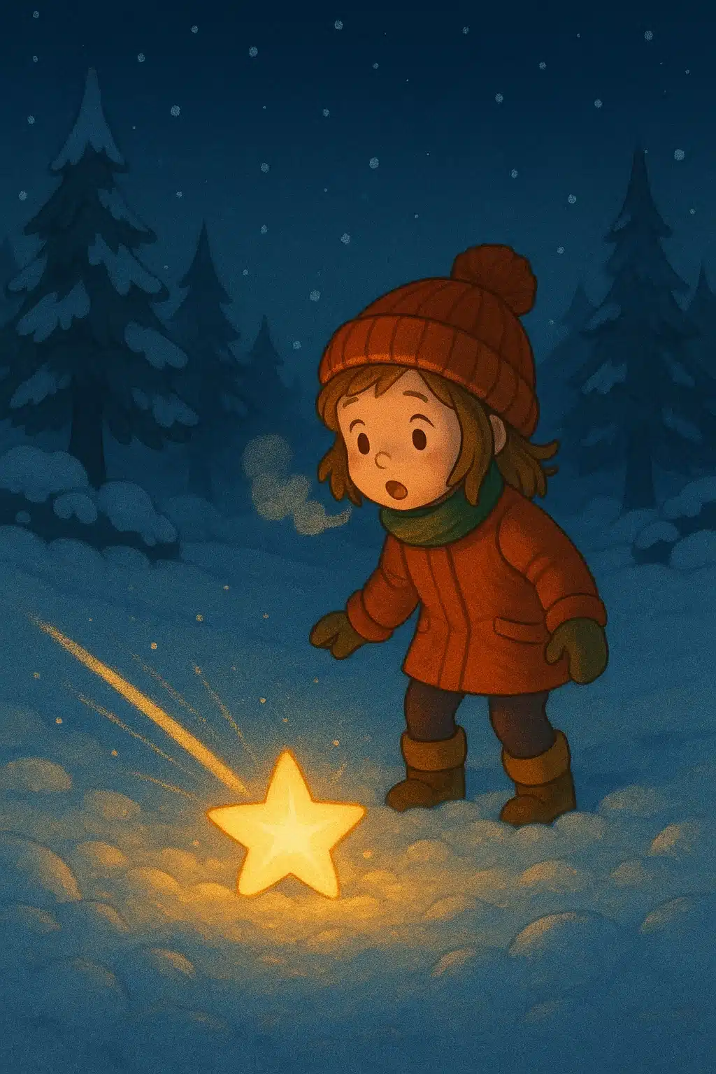 Το πεφταστέρι καθόταν πάνω στο χιόνι, μικρούτσικο, όσο μια μπάλα, αλλά έλαμπε σαν χίλια λαμπάκια μαζί.