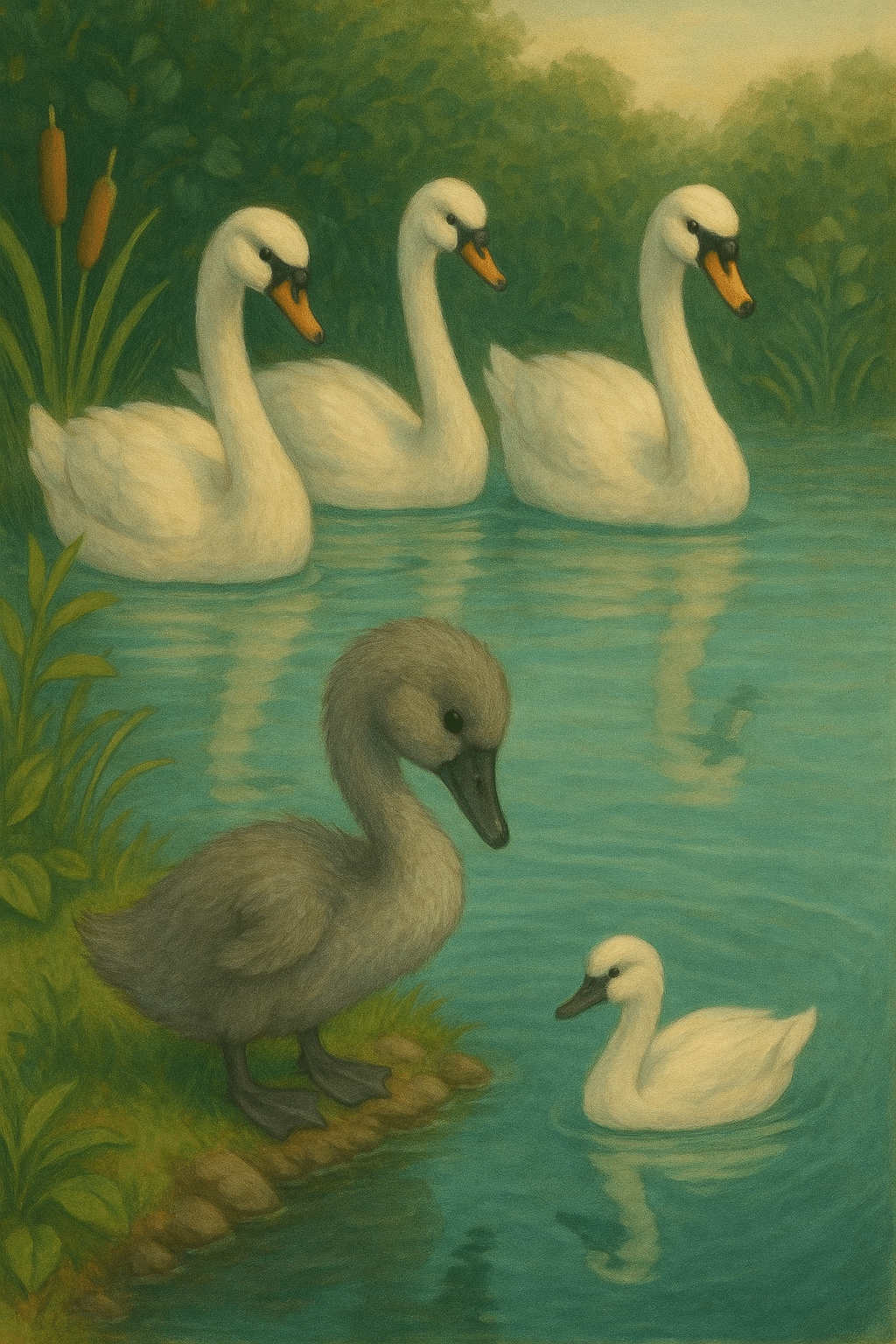 ♦ Κοίταξε το νερό και είδε έναν κύκνο — ίδιο με τους άλλους, ήταν ο εαυτός του. Απλώς είχε μεγαλώσει και είχε αλλάξει.