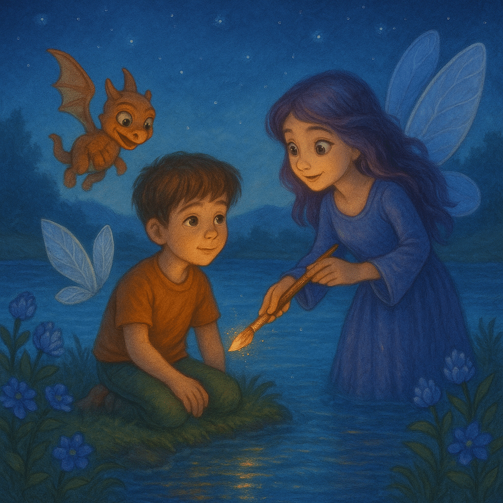 — «Το όνειρό σου δεν χάθηκε ποτέ!» είπε ο Τσίκο.Ο Μάριος ζωγράφισε στον αέρα. Τα χρώματα ζωντάνεψαν. Η λίμνη μεταμορφώθηκε σε καμβά.