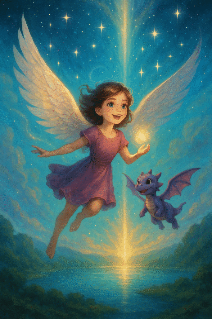 🌈 Το πήγαν στην Πηγή της Μαγείας. Το φως του άνοιξε τους ουρανούς και τα όνειρα ξαναγεννήθηκαν. Η καρδιά του χρόνου χτύπησε δυνατότερα από ποτέ. Τα παιδιά γέλασαν και όλες οι ιστορίες τραγουδήθηκαν ξανά.
