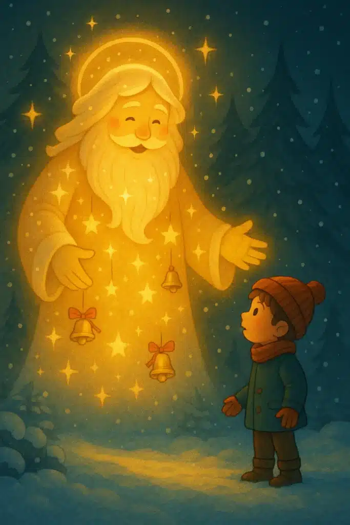 🎅 Αμέσως μπροστά του εμφανίστηκε ένα μικροσκοπικό πνεύμα, με στρογγυλά μάγουλα και μια μύτη κόκκινη σαν στολίδι, που φτερνίστηκε τόσο δυνατά που πέταξε χρυσόσκονη παντού.