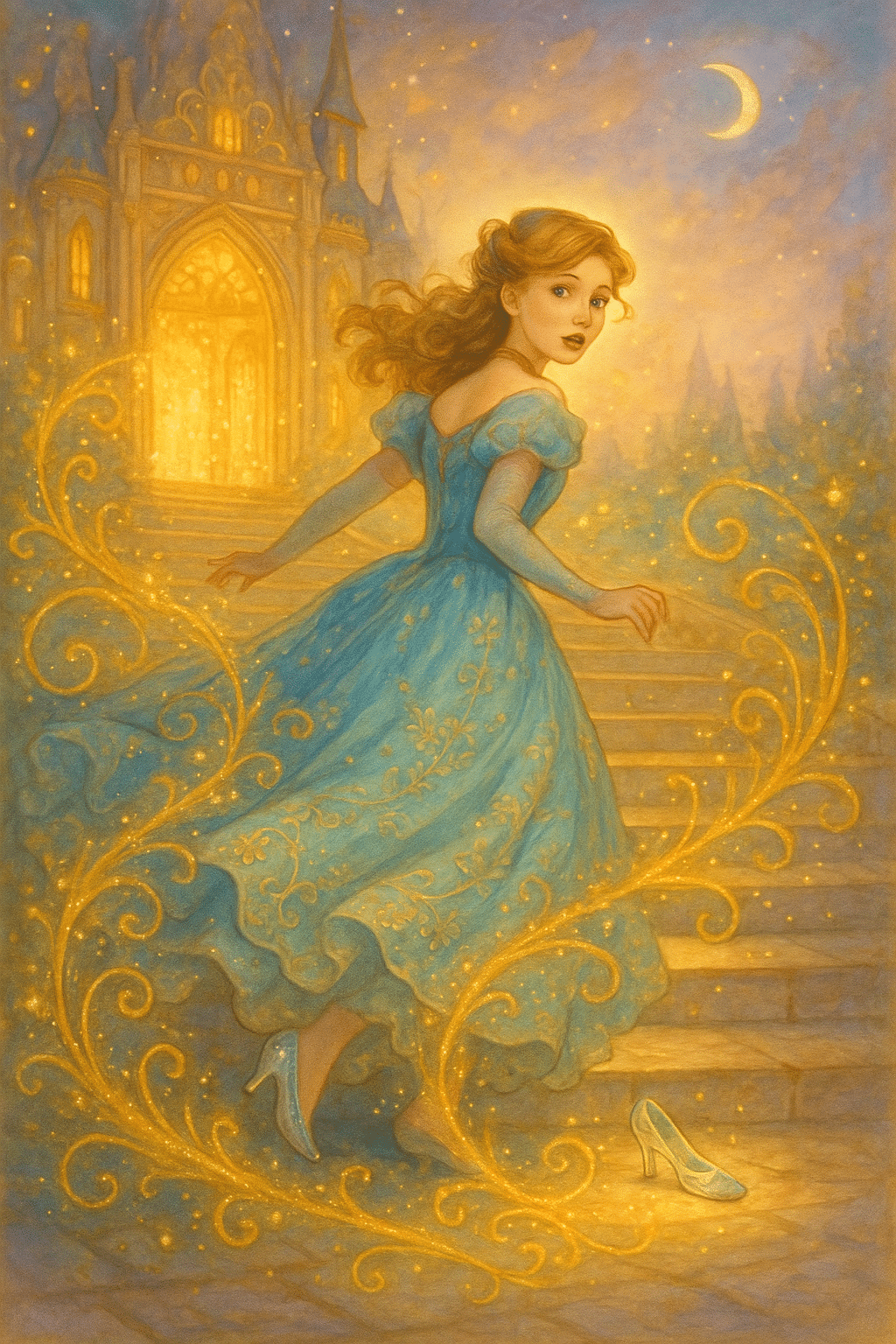 ✦ Μια μέρα, ήρθε προσκλητήριο από το παλάτι. Ο πρίγκιπας θα έκανε έναν μεγάλο χορό. Όλες οι κοπέλες του βασιλείου μπορούσαν να πάνε — ίσως η Σταχτοπούτα να έβρισκε εκεί την καρδιά που έψαχνε.