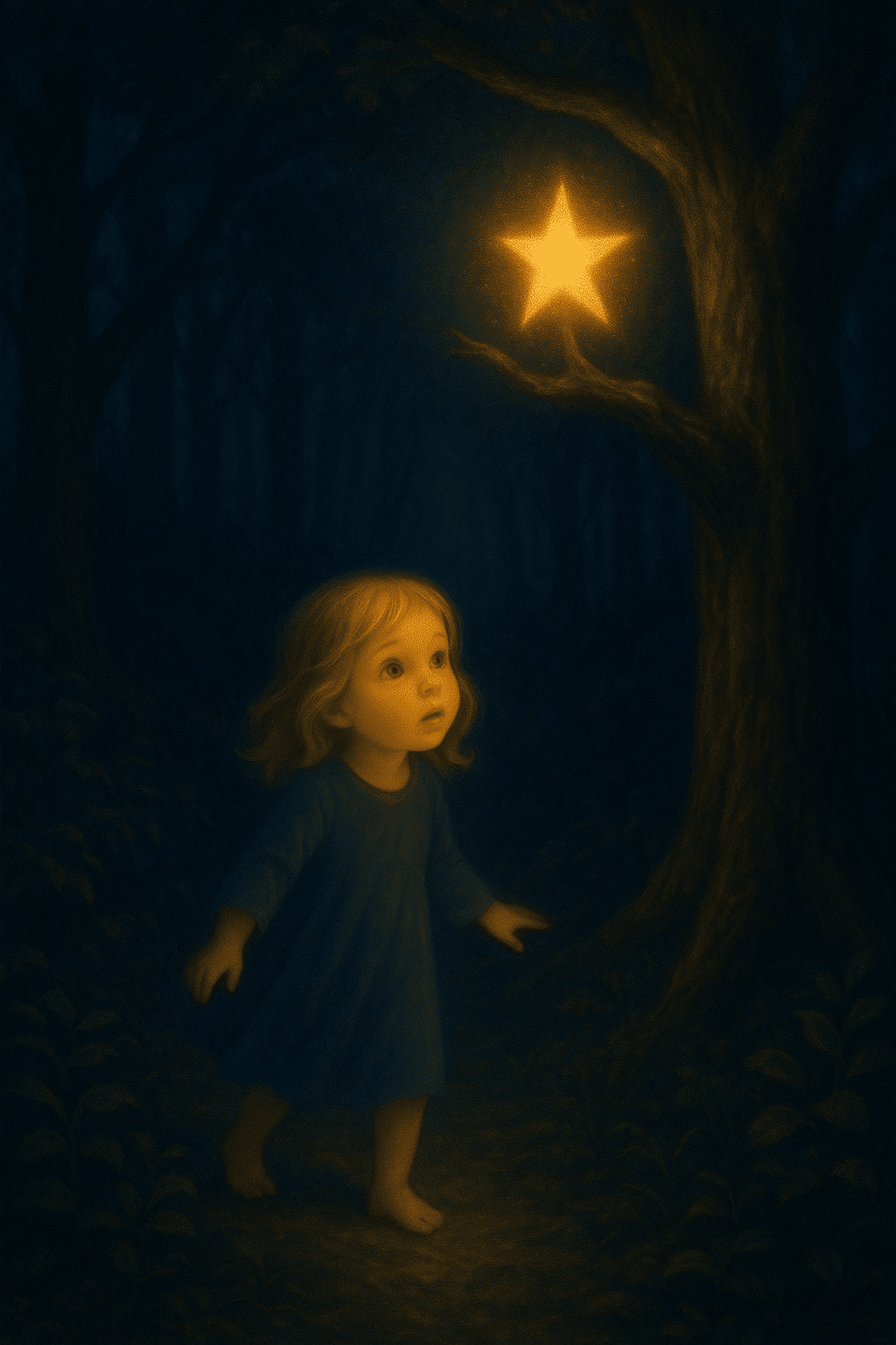👧 Η μικρή σήκωσε το βλέμμα της και είδε μια ζεστή λάμψη σαν φλόγα χωρίς φωτιά. Ο Αστέρης δεν μιλούσε, μα φώτιζε τον δρόμο μπροστά της.