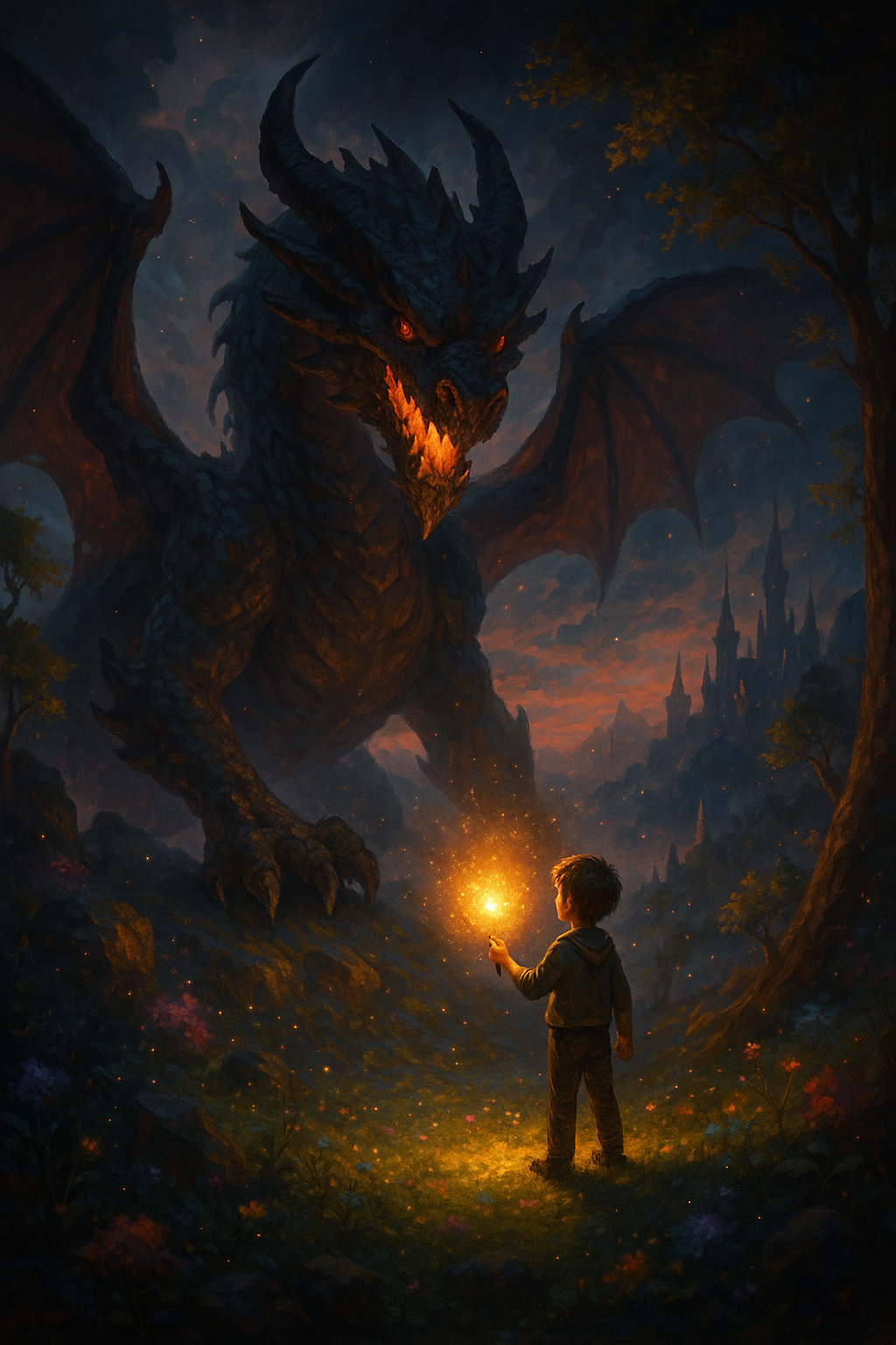 Ο Νόγκρεθ δεν ήταν σαν τους άλλους δράκους. Είχε μάτια από καπνό και φλόγες που μπορούσαν να λιώσουν ολόκληρες πόλεις. Όταν πετούσε, ο ουρανός σκοτείνιαζε και όταν βρυχούσε, σεισμοί ξυπνούσαν στα βάθη της γης. Ήταν τόσο τρομακτικός που ολοι τον φοβόντουσαν.