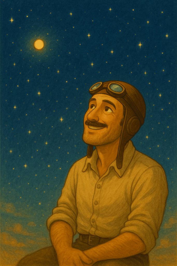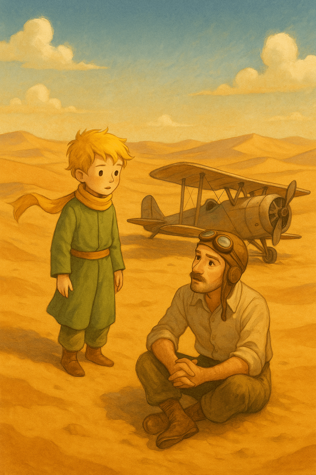 ✦ Κάποτε, ένας πιλότος είχε πέσει με το αεροπλάνο του στη μέση μιας μεγάλης ερήμου. Δεν είχε γύρω του τίποτα — μόνο άμμο, ουρανό και σιωπή.