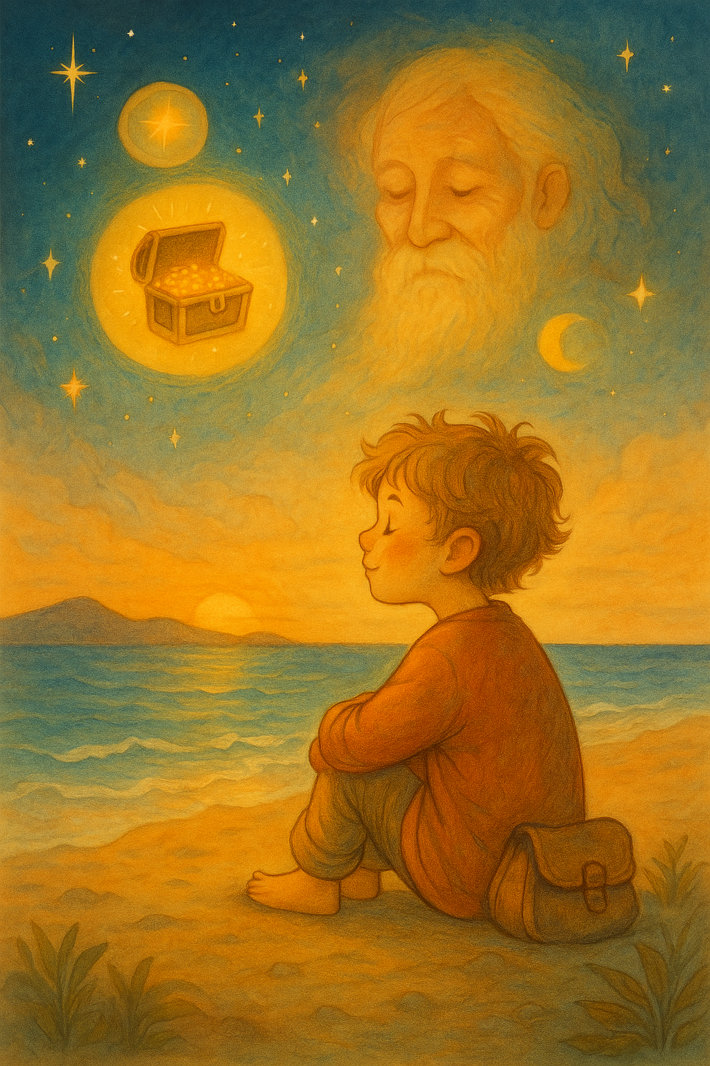 🌟 Κάποτε, σε ένα μικρό χωριό δίπλα στη θάλασσα, ζούσε ένα παιδί που το έλεγαν Ιωάννη. Του άρεσε να κάθεται στην ακρογιαλιά και να κοιτάζει τον ορίζοντα, εκεί όπου η θάλασσα άγγιζε τον ουρανό. Ένιωθε ότι κάπου εκεί έξω τον περίμενε κάτι πολύτιμο, ένας θησαυρός που δεν ήξερε ακόμα ποιος ήταν.