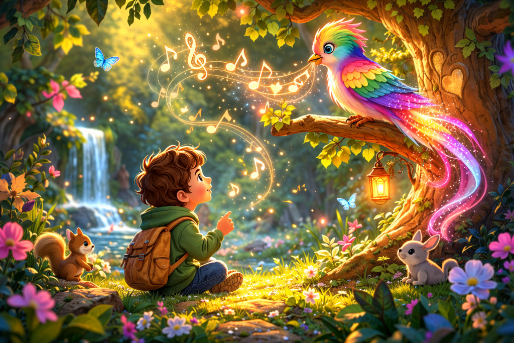 ♦ Το παιδί αποφάσισε να ακολουθήσει το τραγούδι. Καθώς προχωρούσε, το τραγούδι γινόταν όλο και πιο καθαρό. Δεν ήταν ένα απλό τραγούδι. Ήταν ένα τραγούδι που έκανε την καρδιά του να νιώθει ζεστή και ήρεμη.