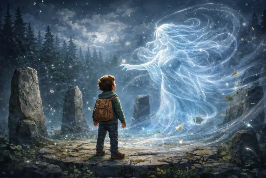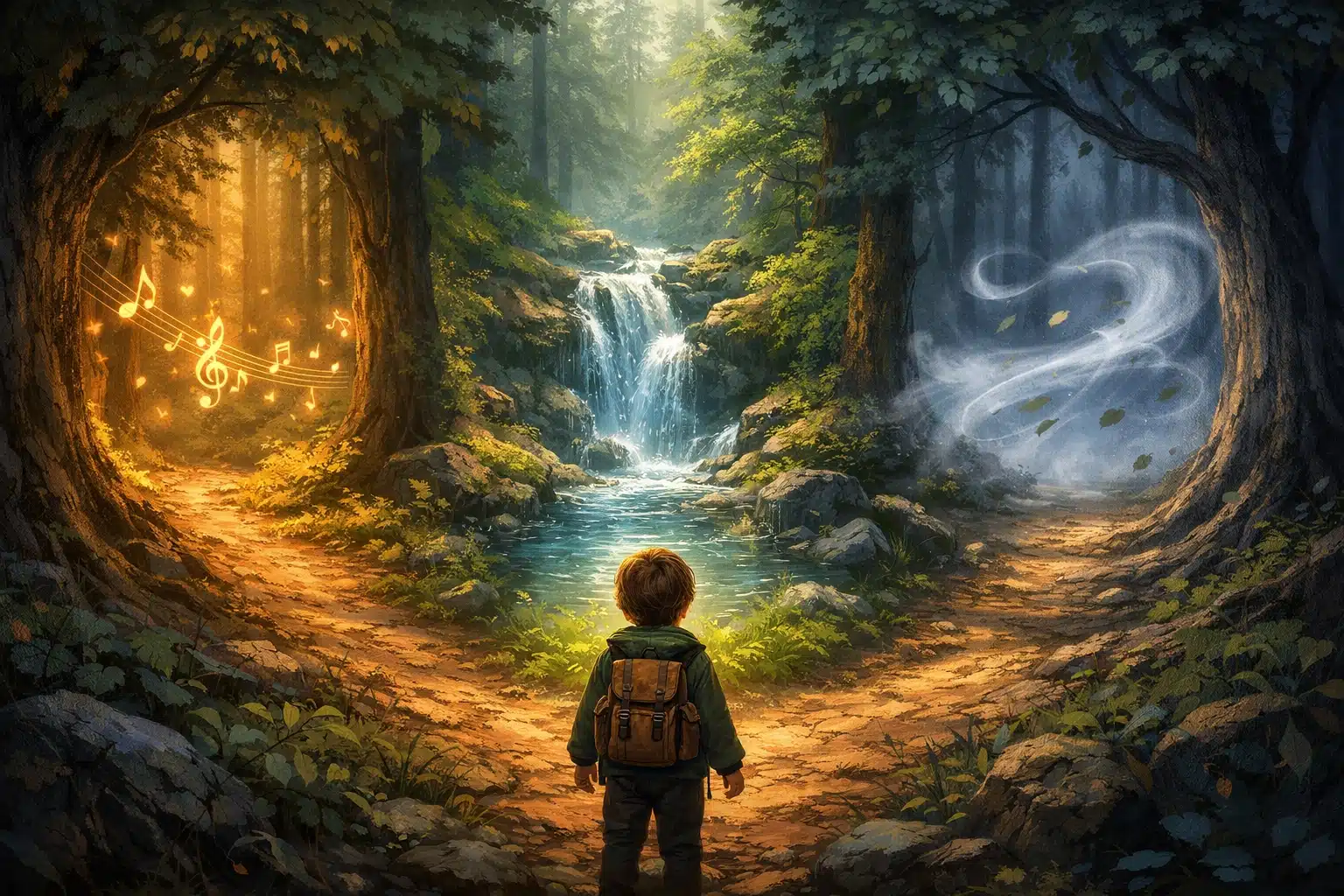 🌲 Μια φορά κι έναν καιρό, ένα μικρό παιδί περπατούσε μόνο του σε ένα μεγάλο δάσος. Τα δέντρα ήταν ψηλά και παλιά, τόσο παλιά που οι κορμοί τους έμοιαζαν σαν να κρατούσαν μέσα τους χιλιάδες ιστορίες. Το παιδί κρατούσε ένα μικρό σακίδιο και προχωρούσε προσεκτικά πάνω στα ξερά φύλλα που έτριζαν κάτω από τα βήματά του.