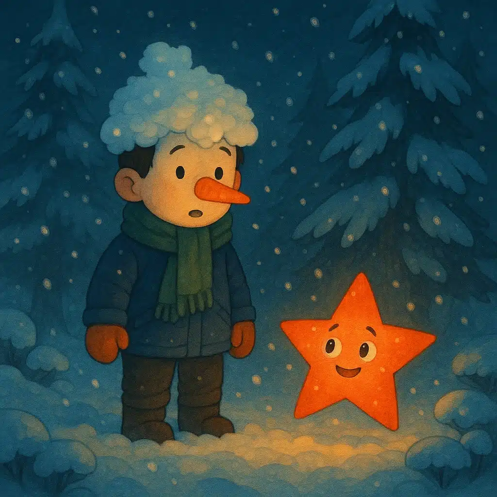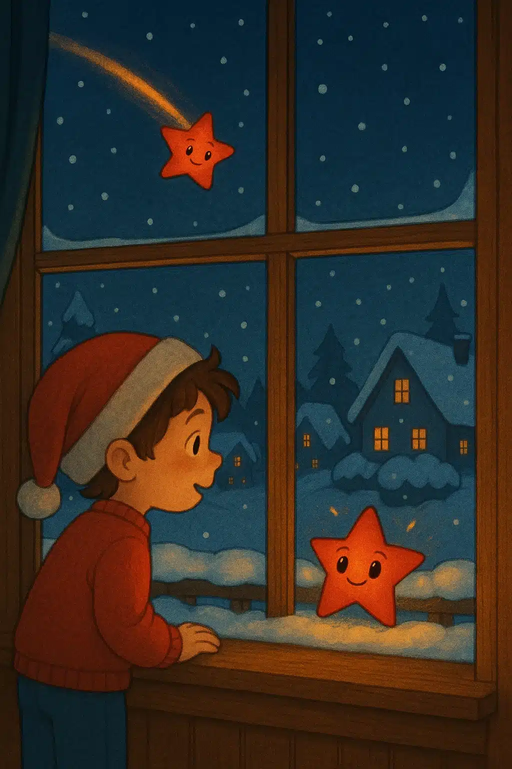 ❄️ Ξαφνικά, ένα κόκκινο αστέρι έπεσε από τον ουρανό και προσγειώθηκε στο μπαλκόνι του με ένα “φλουπ!”.