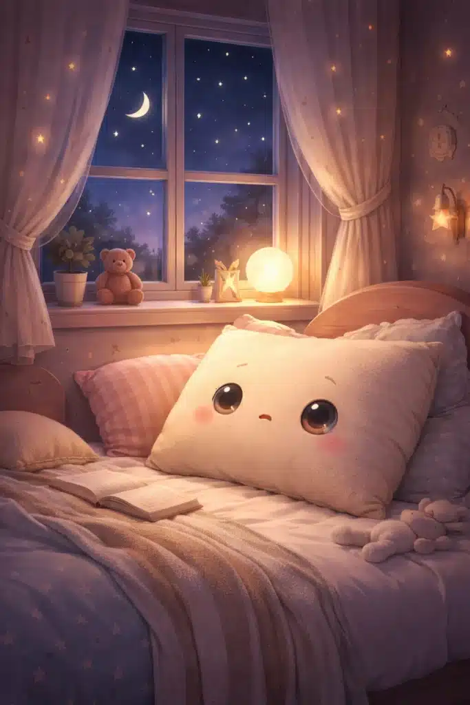 🌙 Κάποτε, σε ένα μικρό δωμάτιο με γαλάζιους τοίχους και ένα παράθυρο που έβλεπε τ’ αστέρια, ζούσε ένα μαξιλάρι διαφορετικό απ’ όλα τ’ άλλα. Ήταν απαλό, λευκό και μυρωδάτο, μα είχε ένα μεγάλο μυστικό: δεν είχε ποτέ όνειρα.
